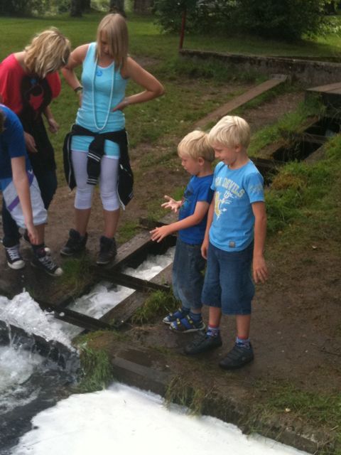 Fisketrapperne ved Tange Sø tiltrak de små. At se laksene prøve at hoppe mod strømmen