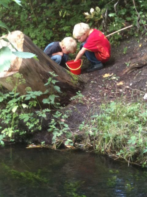 5 livlige unger fodres og forplejes af det travle forældrepar. Vores bil viger pladsen en smule