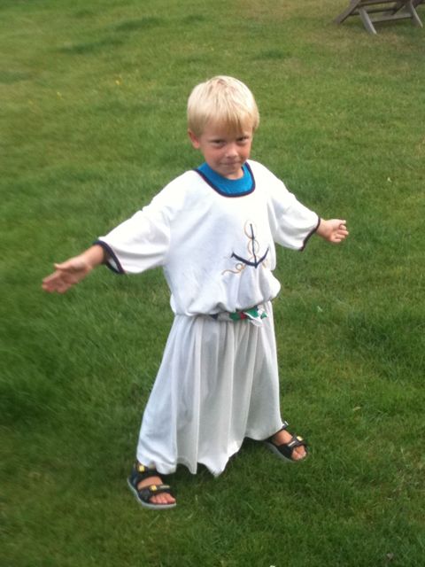 Efter aftensmaden ville børnene lege. Luvig var hurtig og fandt hurtigt noget sejgt Kong Fu tøj, som han var stolt af.